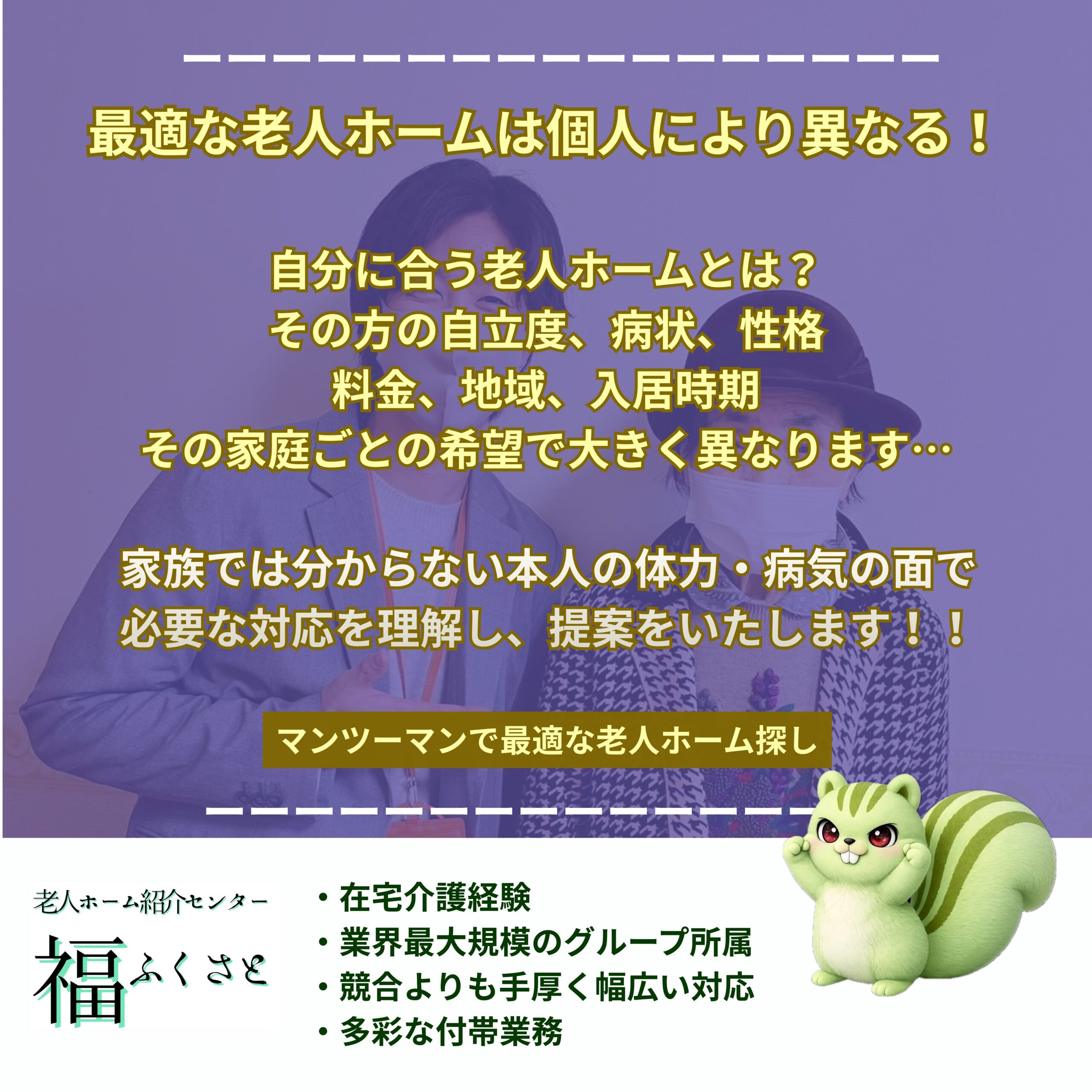→マンツーマンで最適な老人ホーム探し